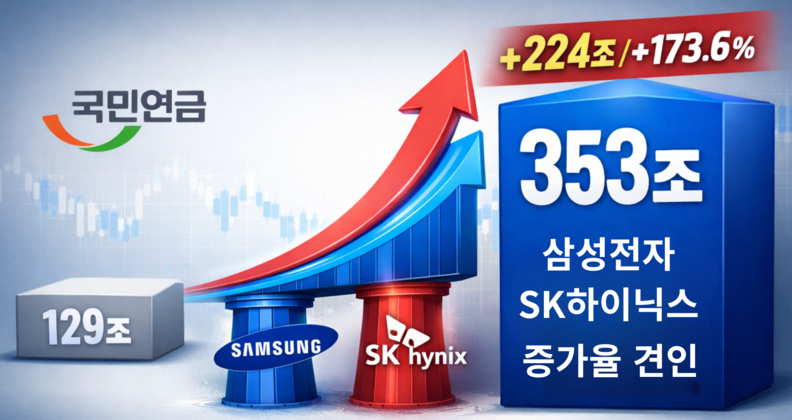 인싸잇=유승진 기자 | 국민연금이 국내 주식시장에서 보유한 지분 가치가 최근 1년여 사이 3배 가깝게 늘며 350조 원을 돌파했다. 특히 그 증가분의 절반 이상의 비중이 삼성전자와 SK하이닉스에 몰려 있는 것으로 나타났다.