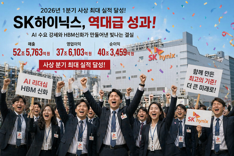 인싸잇=한민철 편집국장 | SK하이닉스가 올배 1분기 매출 52조 원, 영업이익 37조 원을 돌파하며, 역대 최대 분기 실적 기록을 달성했다. 글로벌 인공지능(AI) 반도체 수요 급증과 고부가 제품 판매 확대 그리고 공급 역량 확보 등이 이번 호실적을 견인했다는 분석이 나온다. 이날 실적 발표에 SK하이닉스의 주가도 역대 최고가를 돌파했다.