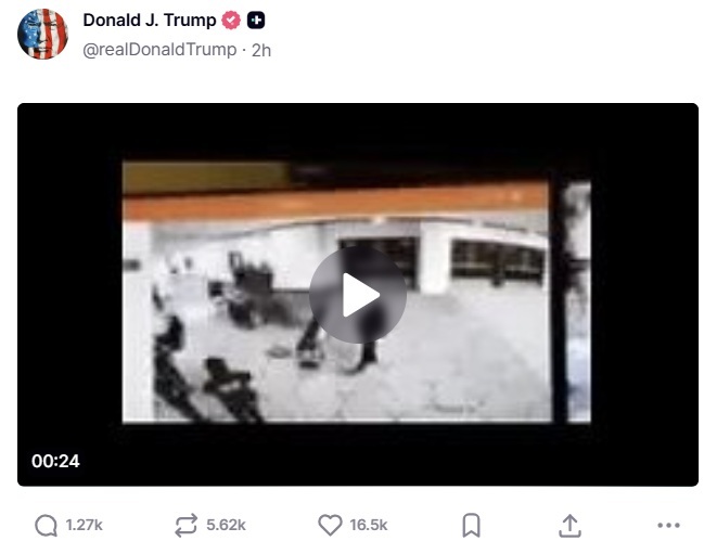 트럼프 대통령은 사건 발생 직후 자신의 트루스소셜에 당시 상황이 담긴 24초 분량 영상을 공개했다.
