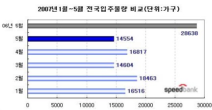 이는 지난해 5월 입주물량인 2만8638가구의 절반 수준으로 올 들어 가장 적은 월 입주량이다.