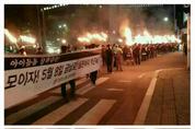 광주·전남 통진당 세력이 박근혜 대통령 퇴진 투쟁에 본격 돌입했다.민주노총 광주본부 등 통진당 세력은 30일 저녁 광주 금남로에서 횃불시위를 벌이며 박근혜 대통령 퇴진을 요구했다.특히 SNS 상에서는 광주 금남로에서 박근혜 대통령 퇴진 횃불 시위가 전개되고 있다는 소식도 급속히 확산되고 있다.이들 시위대들은 '아이들을 살려내라,모이자! 5월8일 금남로 심판하자 박근혜'라는 플래카드와 횃불을 들고 금남로 일대를 행진했다.앞서 광주·전남 진보연대도 지난 28일 새누리당 광주시당 앞에서 기자회견을 갖고 "대한민국에서 새누리당 박근혜 정권을 두고서는 제2, 제3의 세월호 참사가 반복될 수밖에 없다"며 "세월호 참사를 수수방관한 박 정권은 퇴진하라"고 요구했다.광주·전남진보연대는 이날 오후 광주 북구 새누리당 광주시당 앞에서 기자회견을 열고 "세월호 침몰은 선장과 승무원들이 1차적 책임이지만 대형 참극으로 사태를 키운 것은 박근혜 정권이다"며 "침몰하는 세월호를 지켜보기만 했던 청와대와 무소신의 관료들이 세월호와 함께 대한민국을 침몰시켰다"고 밝혔다.또 "박근혜 정권은 총리의 사퇴로 자신에게 향하는 국민적 분노와 지탄을 차단하고 있다"며 "전형적인 꼬리자르기식이다"고