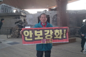시민단체 활빈단 홍정식 단장이 22일 오전 안중근 항일의사를 범죄자로 격하시켜 망언 발언자인 일본 관방장관을 응징하겠다는 현수막을 내걸고 청와대 앞에서 규탄 시위를 벌였다.