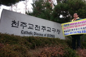 시민단체 활빈단 홍정식 단장이 24일 저녁 사회적 파장이 일고 있는 천주교정의구현사제단 박창신 원로신부를 찾아가 강력하게 항의했다.홍 단장은 이날 오후 2시께 전구교구청을 항의 방문 시위를 벌인데 이어 오후엔 정의구현사제단의 미사장소였던 군산 수송동 성당을 항의 방문해 시위를 벌였다.군산 신도시에 위치한 수송당 성당은 경찰관들로 분주해 보였다.다음날(25일) 한국자유총연맹과 어버이연합 등 보수단체의 집회신고가 예정돼 있어 익산경찰서 경찰관들이 현장상황을 점검하고 있었다.그런데, 그곳에서 놀라운 정보가 흘러나왔다. 박창신 신부가 익산 성당에서 미사에 참여한다는 정보였다.이미 한바탕 홍역을 치러 당분간 대외활동을 자제할 것으로 예상됐지만, 박 신부는 예고한대로 익산성당에서 미사에 참여키로 했다는 것이었다.박창신 원로신부가 저녁 미사에 강론한다는 조식을 접하고 미사에 직접 참석하기로 하고 홍 단장 일행은 저녁 6시쯤 급히 익산 모현동 성당으로 이동했다. 24일 저녁 7시 30분 전북 익산 모현동 성당에 들어섰다.당시 성당내 예배당엔 일반 성도 30여명과 익산경찰서 소속 정보과 경찰(3명)과 중앙일보 기자와 섞여 있었고 박 신부는 미사를 직접 주관했다.미사시작 직전