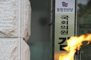 시민단체 활빈단 홍정식 대표가 15일 오후 통합진보당 제주시당사 앞에서 헌법 준수를 촉구했다.앞서 활빈단은 제주지검에 공무원 정치중립 의무를 위반하며 대선에 개입한 전공노를 솎아내라며 수사를 의뢰했다