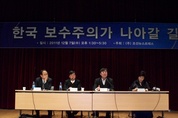 한나라당이 뿌리 채 흔들리고 있다. 4.27, 10.26 연이은 선거 패배와 예고 없이 불어 닥친 ‘안철수 돌풍’에 직격탄을 맞은 당 안팎에선 해체론까지 나오고 있다. 덩달아 우파세력까지 방향을 잃고 표류하고 있다. 7일 조선뉴스프레스가 주최한 ‘한국의 보수주의가 나아갈 길’ 토론회는 바로 이런 문제의식에서 마련됐다. 백범김구기념관에서 열린 이날 토론회는 3가지 주제별로 나눠 진행됐다. 먼저 제1주제 ‘한국 보수의 뿌리와 정체성’에서는 남시욱 세종대 석좌교수의 주제발표에 이어 강규형 명지대 기록과학대학원 교수와 한기홍 북한민주화네트워크 대표의 토론이 이뤄졌다. 남시욱 교수는 한국 보수의 뿌리를 조선조 말 집권세력인 수구파에 맞서 문명개화와 부국강병을 도모했던 당시의 진보세력이었던 ‘개화파’로 봤다. 이에 따라 개화파3세대로 이들의 대표 격인 이승만 초대 대통령을 한국 보수우파세력의 원조 격이라 할 수 있다는 의견을 피력했다. 남시욱 “대한민국 발전원동력은 보수주의 사상” 강규형 “자칭 보수 다수는 ‘생각없는 얌체’” 한기홍 “대한민국 건국, 산업화의 기적은 무에서 유를 창조한 가장 진취적인 진보” 남 교수는 “한국 보수세력의 원류인 개화파와 이들의 전통을 이
