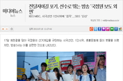 국정원 촛불 보도와 관련해 좌파진영 언론들의 공영방송 때리기가 점입가경으로 흐르고 있다. 국정원의 정치 개입을 규탄하는 시국선언이 봇물을 이루고 있는데도 KBS·MBC가 보도는커녕 ‘선수’로 뛰고 있다는 비난이다.좌파진영 미디어 비평 웹진 미디어스는 18일 기사 을 통해 “17일 제헌절을 맞아 국정원의 선거개입을 규탄하는 시국선언, 1인시위, 촛불문화제 등이 봇물을 이뤘지만, 방송 3사는 이를 외면한 것으로 나타났다.”며 방송사들을 맹비난했다.기사는 서울대 교수 128명을 비롯해 국정원 선거개입 규탄 민주주의 수호 청소년 시국회의, 보건의료단체연합 등 좌파진영의 비난 목소리를 전달하면서 “국정원의 불법대선개입 사건을 비판하는 시국선언이 지난달 5일 시민사회단체들을 시작으로 한 달 넘게 각계각층으로 번져나가고 있는 모양새”라며 “하지만 KBS와 MBC는 17일 저녁 메인뉴스에서 이를 일절 다루지 않았다. SBS만 에서 단신으로 서울대 교수들의 시국선언을 짧게 언급하는 데 그쳤을 뿐”이라고 맹비난했다.이어 네티즌들의 비난 여론과 “방송 3사는 물론 종편 채널들이 국정원 불법 선거 개입에 대한 대학교수, 대학생, 시민사회단체의 시국 선언이나 시위, 집회 등을 보도