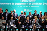지난 20일 환경 분야 세계은행이라 할 녹색기후기금(GCF)을 유치한데 이어 우리나라가 주도한 첫 국제기구인 ‘글로벌녹색성장연구소(GGGI)’가 23일 창립총회를 열고 공식 출범했다. 올 초 출범한 녹색기술센터(GTC)와 함께 완벽한 ‘그린 트라이앵글’을 이룬 셈으로, 세계 미래 산업의 주도권을 우리가 쥔 것이다.이와 같은 사실은 우리나라가 원조를 받는 나라에서 원조를 주는 나라, 기술을 받는 나라에서 기술을 주는 나라로 완벽히 바뀌었다는 상징적인 사건이었다. 6.25전쟁 직후 폐허가 된 상태에서 세계로부터 각종 원조를 받아 일어나야만 했던 아픈 경험이 있는 우리로서는 감개무량한 일대 사건이다.이번에 완성한 ‘그린 트라이앵글’은 더군다나 기후변화, 환경 문제, 자원고갈 등 불투명한 미래에 대한 최상의 준비체제를 갖췄다는 의미를 갖는다. 세계는 더 이상 과거와 같이 에너지를 무한대로 소비하고, 환경문제를 소수의 문제로만 인식하며 곳곳에서 일어나는 이상 기후 현상을 무시한 채 살아갈 수 없게 됐다. 그런 점에서 볼 때 우리가 이번에 완성한 ‘그린 트라이앵글’은 대한민국이 ‘미래’에 방점을 찍은 사건이다.전략(GGGI)-재원(GCF)-기술(GTC)의 선순환 ‘녹색