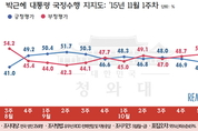 역사교과서 국정화 논란으로 하락하던 박근혜 대통령의 국정수행 지지율이 ‘한중일 정상회의’ 등이 긍정적으로 평가받으며 3주 만에 반등했다.여론조사 전문기관 리얼미터가 9일 발표한 2015년 11월 1주차(2~6일) 주간 집계에 따르면, 박근혜 대통령의 취임 141주차 국정수행 지지도(긍정평가)는 1주일 전 대비 1.5%p 오른 46.0%(매우 잘함 18.8%, 잘하는 편 27.2%)로 지난 2주 동안의 하락세에서 상향으로 방향을 틀었다. ‘국정수행을 잘못하고 있다’는 부정 평가는 1.7%p 내린 48.3% (매우 잘못함 33.8%, 잘못하는 편 14.5%)를 기록했다. 이에 따라, 부정평가와 긍정평가의 격차는 1주일 전 5.5%p에서 3.2%p 줄어든 2.3%p로 다시 오차범위(±1.9%p) 내로 좁혀 졌다. ‘모름/무응답’은 0.2%p 증가한 5.7%로 조사됐다. 박 대통령의 일간 지지율(긍정평가)은, 한일 정상회담이 열렸던 2일(월), 전일조사(30일, 금) 대비 1.2%p 상승한 45.8%를 기록했고, 한중일 정상회담 관련 긍정적 보도가 이어졌던 3일(화)에도 47.5%로 올랐다가, ‘역사교과서 국정화 확정고시’가 있었던 다음 날인 4일(수)에는 44.6