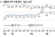 찬반 여론이 팽팽히 맞서던 역사교과서 국정화 문제 여론조사 결과가 ‘반대’쪽으로 살짝 기울었다. 하지만, 대통령직무수행평가와 정당지지율 조사결과는 여전히 여당과 정부를 지지하는 비율이 높은 것으로 조사됐다.30일 한국갤럽이 지난 20일부터 22일까지 사흘간 전국 만 19세 이상 남녀 1,004명을 대상으로 조사한 결과를 발표했다. 이에 따르면, ‘대통령 직무를 잘 수행하고 있는지’를 묻는 질문에 44%는 ‘긍정’, 44%는 ‘부정’ 평가했으며, 13%는 의견을 유보했다(어느 쪽도 아님 6%, 모름/응답거절 7%).대통령 직무 긍정률은 지난 주 대비 2%p 상승, 부정률은 3%p 하락한 수치다. 지지정당별로 살펴보면, 새누리당 지지층의 79%가 긍정, 새정치민주연합의 81%가 부정 평가했지만, 지지정당이 없는 무당층에서는 지난 주 대비 8% 상승해 30%가 긍정 평가했다. 대통령 직무 수행 긍정 평가자(441명)들은 ‘외교/국제 관계’(20%)를 이유로 꼽은 경우가 가장 많았으며, ‘열심히 한다/노력한다’(14%), ‘주관, 소신/여론에 끌려가지 않음’(9%), ‘대북/안보 정책’(7%), ‘한국사 교과서 국정화’(7%), ‘안정적인 국정 운영’(7%) 순으로