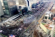 머니투데이 김훈남 기자는 “경찰 추산, 7일 탄핵반대 집회에 3.7만 참여, 서울 광화문광장 촛불집회엔 2.4만명 참여”라며 “지난해 10월과 촛불집회 시작 이후 경찰 추산인원으로 맞불집회 인원이 광화문 촛불집회 인원을 넘어선 것은 이번이 처음이다”라고 설명했다. 탄기국의 태극기 집회는 강남 코엑스 광장에서 열렸다. 촛불집회 시작부터, 100만명이 모였다며, 주최 측의 숫자 부풀리기와 이를 검증없이 그대로 유포한 언론들의 보도행태 탓에, 그나마 객관적인 경찰 추산 숫자에서 태극기 집회가 촛불집회를 넘어선 것은 혁명적인 의미가 있다. 첫째, 툭하면 100만, 200만 불러댔던 촛불 집회의 숫자 부풀리기의 허구성이 입증되었다. 경찰 추산 2.4만명이 참여한 오늘 촛불집회도, 주최측은 60만명이라 부풀리고, 친노포털, 종편 등은 여전히 그대로 보도하고 있다. 만약 2.4만명이 60만명이 된다면 3,7만명은 100만명이 된다. 실제로 탄기국의 정광용 대표는 오늘 100만명 이상이 모였다고 선언했다. 둘째, 촛불집회는 친노포털과 종편은 물론, 종합일간지 전체 언론사들의 광폭적인 지원을 받았다. 따로 홍보가 필요없을 정도이고, 종편들은 생중계에 나서주기도 했다. 또