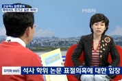 지난 21일 MBN 고승덕의 '집중분석'에 출연한 연예인 김미화는 주간 미디어워치가 지적한 논문표절에 대해 '마침표나 쉼표를 안찍은 수준'의 문제라며 정당성을 주장했다. 특히 사회자 고승덕은 노골적으로 김미화의 편에서 주간 미디어워치에 대한 음해성 발언을 반복하여, 향후 정치적 논란을 예고했다.고승덕은 시작부터 "누가 이상한 글을 올렸어요. 석사 논문에 대해서요. 속상하시죠?"라며 정기간행물로 등록된 주간 미디어워치의 산하 연구진실성검증센터에 대한 음해를 시작했다.그러면서 일방적으로 "표절할 수 없는 논문인데요"라며, 스스로 논문표절여부에 대한 판정을 내렸으며 "너무 속상해하시지 마시고요. 국민들은 다 아시죠"라며 여론선동까지 일삼았다.김미화의 경우 논문의 이론적 배경을 설명하는 대목에서 남의 논문을 통째로 베낀 혐의로, 이미 주간 미디어워치 측은 성균관대학교 측에 제소까지 한 상황이다. 성균관대학은 논문을 정밀히 검토하여 논문 취소 등의 처분을 내려야 한다.이런 상황임에도, 고승덕은 일방적으로 주간 미디어워치를 음해하며 김미화의 편에서 방송을 진행, 주간 미디어워치는 이와 관련 방통심의위 심의요청 및, 고승덕과 MBN에 대한 법적 조치 등을 취할 예정이다.