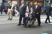 애국우파시민들의 애국심은 평일과 주말을 가리지 않았다. 대한애국당은 26일 오후 2시 여의도 자유한국당 당사 앞에서 ‘제21차 태극기집회’를 열고 자한당의 박근혜 대통령 출당 조치를 규탄했다. 이날은 평일임에도 불고하고, 집회에 참가한 애국우파 시민들의 행렬이 수 백미터에 이르렀다. 우려와 달리 교통 정체나 충돌은 거의 발생하지 않았다. 주말에 비해 많은 인원은 아니었지만, 참가한 인원들의 표정과 분위기는 한층 밝았다. 집회에 참석한 인원들은 여의도 일대를 행진하며 자한당과 문재인 정권에 비판의 목소리를 냈다. 오랜 기간 단식 투쟁으로 인해 건강 상태가 우려되던 조원진 공동대표도 집회에 나타나 참가인원들의 분위기를 더욱 돋구었다. 조원진 공동대표는 지친 기색없이 연설에 나서 좌중들을 휘어 잡기도 했다. 조원진 공동대표는 청중들을 향해 “자한당이 내쫓으려는 박근혜 대통령, 자한당 앞에서 박근혜 대통령을 외쳐보자”며 호기롭게 참가자들의 기세를 올렸다. 조 공동대표는 “작년 4월 총선 당시 김무성 대표와 원유철 원내대표는 180석 얻는다고 희희덕거리며 얘기했는데, 이제 박근혜 대통령을 무능하다고 쫓아내야한다고 말한다”며 “무능한 사람은 자한당에 있는 국회의원들”이