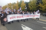 "태극기집회가 강력하게 계속될 것"이라고 예고한 조원진 대한애국당 공동대표의 말이 그대로 실현됐다. 대한애국당은 21일 오후 2시 서울 대학로 마로니에 공원에서 ‘제 20차 박근혜 대통령 정치투쟁 선언 지지 태극기 집회’를 열었다. 이번 집회에 참가한 자유통일 애국우파 시민들은 박근혜 대통령 구속연장 결정으로 좌절에 빠졌던 지난 집회에서와는 달리 박 대통령의 옥중 투쟁 메세지로 새로운 결의를 다진 모습이었다. 앞서 박근혜 대통령은 구속 연장이 결정되자 재판 거부의 뜻을 밝히며, 사실상 옥중 정치 투쟁을 시작했다. 이에 조원진 대한애국당 공동대표는 “박 대통령은 ‘옥중투쟁’으로 애국국민들은 거짓과 불의에 저항하는 정치투쟁으로 이어갈 것이다”며 “박근혜 대통령 정치투쟁의 전국적 지지집회를 통해 거센 저항과 투쟁이 전개될 것이다”고 밝힌 바 있다. 박 대통령의 첫 메시지를 받은 애국우파 시민들은 이번 집회에서 더욱 큰 목소리를 내며 강력하게 결집했다. 이에 더해 자유한국당 윤리위원회에서 박근혜 대통령에 탈당을 권유한 점도 태극기집회 결집에 큰 몫을 했다. 반면 대한애국당과 궤를 달리하는 대한문, 청계천 등의 보수우파 집회는 활력을 잃은 모습이었다. 조원진 공동대