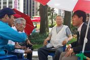 광화문 동아일보 앞 ‘국회해산’, ‘국회선진화법 폐기’, ‘세월호 특별법 반대’ 촉구를 위한 농성장에, 여권 정치인들의 발길이 이어지고 있다. 지난 9월 1일, 약 4개월 간 단 한 건의 법안도 통과시키지 않은 300명의 국회의원 전원을 직무유기로 고발한 인미협, 자유청년연합, 새마음포럼 등 애국단체는 그날 광화문에 천막을 설치하며 24시간 농성에 들어갔다. 그뒤 9월 6일 일베 회원들이 중심이 되어, 광화문 광장을 되찾기 위한 피자 파티를 열면서, 농성장도 더불어 활기를 띄게 되었다. 9월 11일에는 새누리당의 이한성 의원이 농성장을 방문, 변희재 대표 등과 민심 등에 댛나 의견을 나누었다. 변대표는 “우리가 국회해산을 촉구하는 것은, 친노좌익 세력들과 야합을 해서 국회를 정상화하라는 게 아니라, 저들의 탈법적 요구를 국회의원직 전원 사퇴를 해서라도 막으라는 뜻”이라 강조했다. 9월 12일에는 한기호 새누리당 의원이 방문, 아예 국회해산 촉구 서명란에 직접 서명하기도 했다. 한기호 의원은 현역 국회의원이란 점에서 의미심장한 일이었다. 한기호 의원은 300명의 국회의원을 직무유기로 고발한 건에 대해서도 지지를 표한 한 바 있다. 현장에 있던 성호스님은 한기호