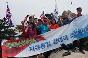 애국산악회가 2차 정기등반 수락산 정상에서 ‘자유통일 강대국 코리아’ 플래카드를 펼쳤다. 애국산악회는 변희재 인미협 대표, 장기정 자유청년연합 대표, 데니스김 새마음포럼 대표, 강인오 대표 등등이 중심이 되어 구성, 태극기는 물론, 미국의 성조기, 영국의 유니언잭 등 6.25 참전국 중심의 우방국 국기를 함께 들고 올라간다. 이번 2차 등반부터는 ‘자유통일 강대국 코리아를 염원합니다’라는 플래카드를 정상에 펼쳤다.특히 최근 문창극 총리 지명자의 온누리 교회 연설 거짓조작음해 건 관련 문 후보가 세계중심국가로서의 대한민국을 역설한 것과 비교, 애국산악회의 자유통일 강대국 코리아론은 의미심장하다. 실제로 이 플래카드를 본 일반 등반객들도 함께 사진을 찍는 등, 많은 호응을 얻었다.애국산악회는 정기등반은 물론 번개 등반을 통해 자유통일 강대국 코리아론을 대한민국의 산 정상에서 널리 알리겠다는 계획이다.다음 등반은 새마음포럼의 7월 5일 도봉산 등반에 번개로 참여하고, 매월 셋째주 토요일이 정기등반 일이다. 한편 애국산악회는 등산을 마친 뒤, 광화문에서 문창극 총리 지명자의 청문회를 촉구하는 기자회견을 열기도 했다.