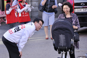 조전혁 경기도 교육감 후보가 유세중 아이가 관심있게 지켜보고 있다.