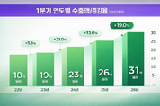 인싸잇=한민철 편집국장 | 꽃샘추위가 다가온 2026년 4월의 둘째 주 국내 화장품 업계는 올해 1분기 화장품 수출액이 전년 동기 대비 19% 증가하며 역대 최대 기록을 올렸다는 이슈가 화제가 됐다. 한국콜마는 상반기 실적 향상 전망에 증권가에서 목표주가 상향 행렬이 이어지고 있고, 동국제약의 센텔리안24는 일본 1000여 개 오프라인 매장 입점을 추진하는 등 일본 시장 공략에 나선다. 올해 1Q 화장품 수출액 역대 최대 기록... 대미 수출 비중 20% 달해 지난 6일 식품의약품안전처(이하 식약처)가 발표한 ‘2026년 1분기 화장품 수출 통계’에 따르면, 올해 1분기 수출액은 작년 1분기보다 19% 증가한 31억 달러(4조 6813억 원)로 역대 최대치를 경신했다. 올해 1·2월 수출액은 전년 동기 대비 큰 변화가 없었다. 하지만 지난달은 같은 기간 29.3%가 늘어난 11.9억 달러를 기록했다. 식약처 관계자는 “1·2월은 이전에도 수출 실적이 3월에 비해 좋지는 않았다”며 “작년부터 수출이 증가했던 호조세가 3월까지 이어진 것으로 보인다”고 설명했다. 국가별 수출액을 보면 미국이 전체 수출액의 19.8%(6억 2000만 달러)를 차지해 가장 많았다.